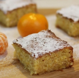 9 majhnih mandarin 3 velika jajca 2 skodelici moke 2,5 skodelice sladkorja 180 gramov masla 1 pecilni prašek