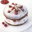Biskvit narežite na 5 trakov (5–6 cm). Vsakega navlažite in premažite z malinovo marmelado. Na vrh nanesite plast maslene kreme. Trakove zavijajte enega za drugim v spiralo in postavite na podstavek. Celotno torto premažite z masleno kremo in po želji okrasite. Hladite 50–60 minut.