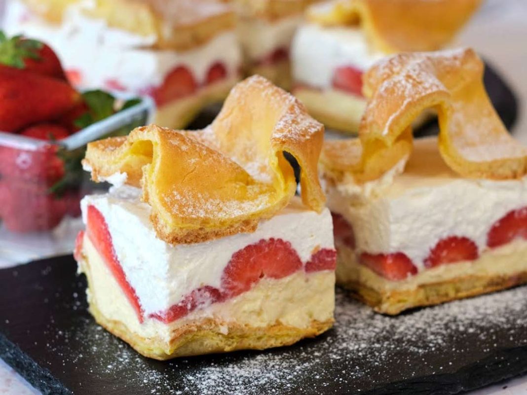 Ta sladica ne očara le s svojim nenavadnim videzom, ki spominja na gorske vrhove – temveč tudi s popolno kombinacijo mehkega, zračnega biskvita, svilnate kreme in svežih jagod.