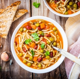 Mineštra ;je prava zakladnica vitaminov, vlaknin in beljakovin. Stročnice, kot so fižol in leča, poskrbijo za dolgo nasiten obrok, medtem ko različna zelen podpira vaš imunski sistem. S testeninami pa juha pridobi prijetno teksturo in dodatno nasitnost.