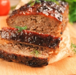 2 veliki jajci 160 ml mleka 2 čajni žlički soli ¼ čajne žličke mletega črnega popra 3 rezine kruha, zdrobljene 680 g mletega govejega mesa 1 čebula, drobno sesekljana 1 skodelica naribanega sira Cheddar ½ skodelice naribanega korenja ¼ skodelice rjavega sladkorja ¼ skodelice kečapa 1 žlica gorčice