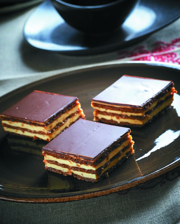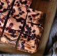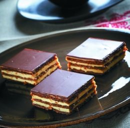 ga testa. Kocke pustimo čez noč, da se zmehčajo. Sestavine za obliv stopimo nad soparo in prelijemo prek pečenega testa. Ko se preliv ohladi, narežemo kocke.