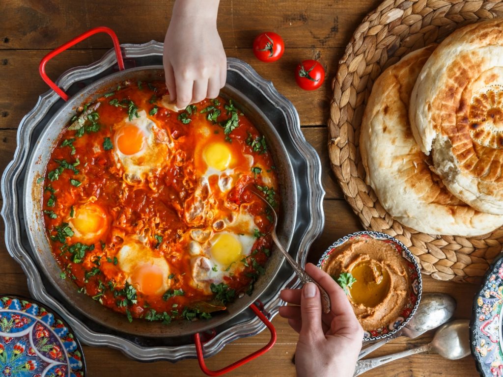 Namig: Šakšuko vedno pripravljamo v ponvi in jo v njej tudi postrežemo, skupaj s svežim peteršiljem, ki bo malo ublažil pekoč okus, in toplim pita kruhom.
