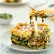 Pekač z lazanjo prestavimo v ogreto pečico za 30-40 minut. Pečeno lazanjo pred razrezom rahlo ohladimo in jo še toplo postrežemo.