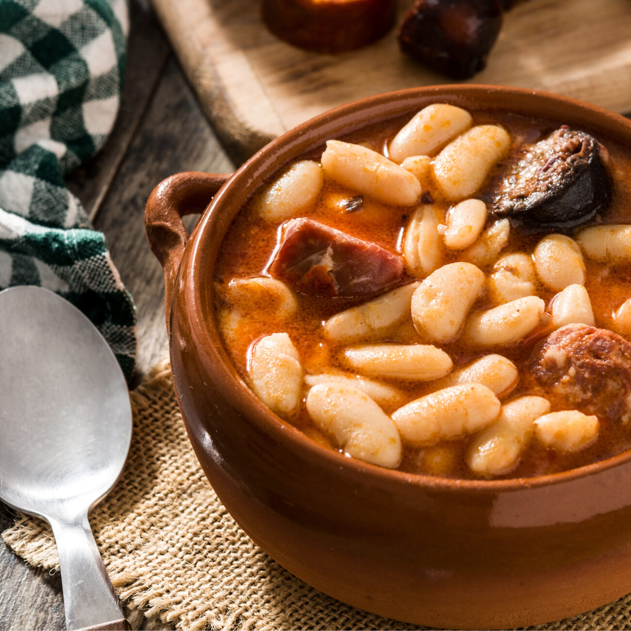 Porcije 6 4 skodelic belega fižola 2 čebuli 3 stroki česna 400 g prekajene šunke 200 g pršuta v kosu 200 g pikantnih klobas 200 g krvavic 1 žlica mlete ostre paprike 1 žlička žafrana žlička soli 2 ščepca mletega popra