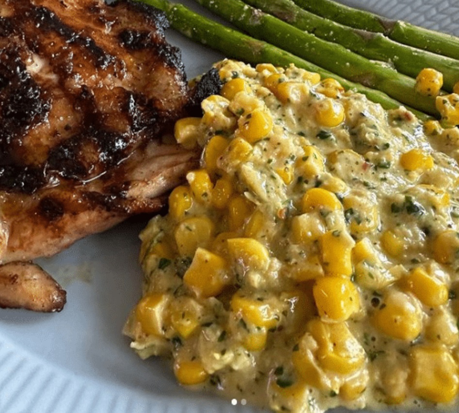 Kremno koruzo postrezite kot prilogo ali pa dodajte še pečeno hrustljavo slanino in postrezite kot samostojno jed.