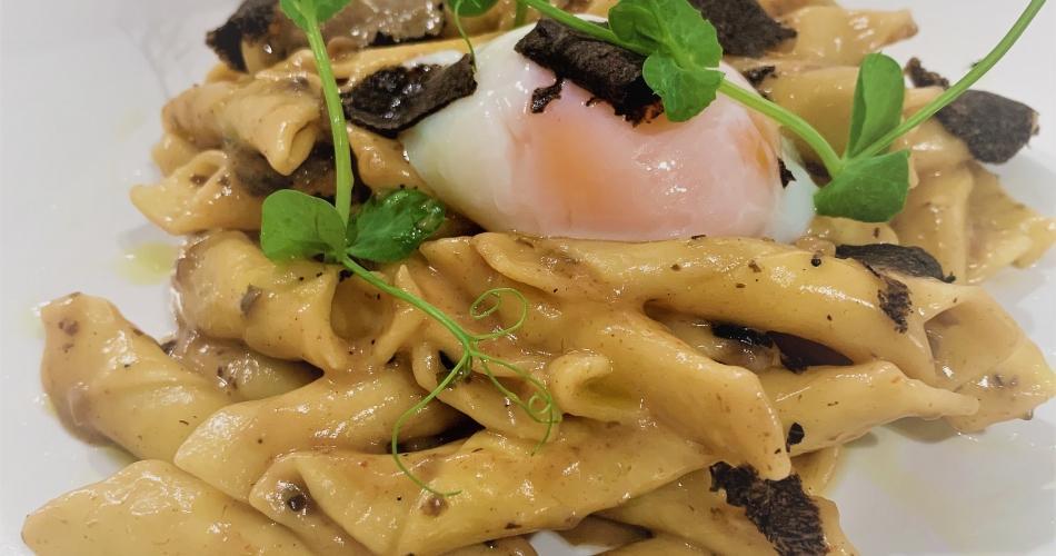 Peresnike skuhajte v obilici slane vode. Odcejene dodajte omaki dobro premešajte in servirajte. Pred serviranjem peresnike še na rahlo pokapljajte z tartufnim oljem. Z tartufi se izjemno dobro ujema jajce, v našem primeru poširano ali “enourno jajce”.