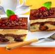 Pekač dobro namastimo. Vanj damo svetlo testo in ga gladko poravnamo. Čez svetlega damo še temnega in po njem potrosimo višnje. Vse skupaj pečemo okoli 30 minut v ogreti pečici na temperaturi 175 stopinj. Pečeno ohladimo na rešetki.