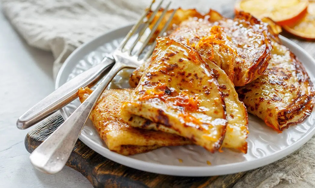 Naredimo karamelo. Maslo raztopimo v večji ponvi in dodamo sladkor. Ko se sladkor stopi in porjavi dodamo sok štirih pomaranč in naribano lupinico. Karamela se bo zaradi temperaturne razlike strdila, zato sok segrevamo in mešamo toliko časa, da se karamela raztopi.