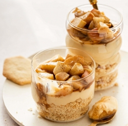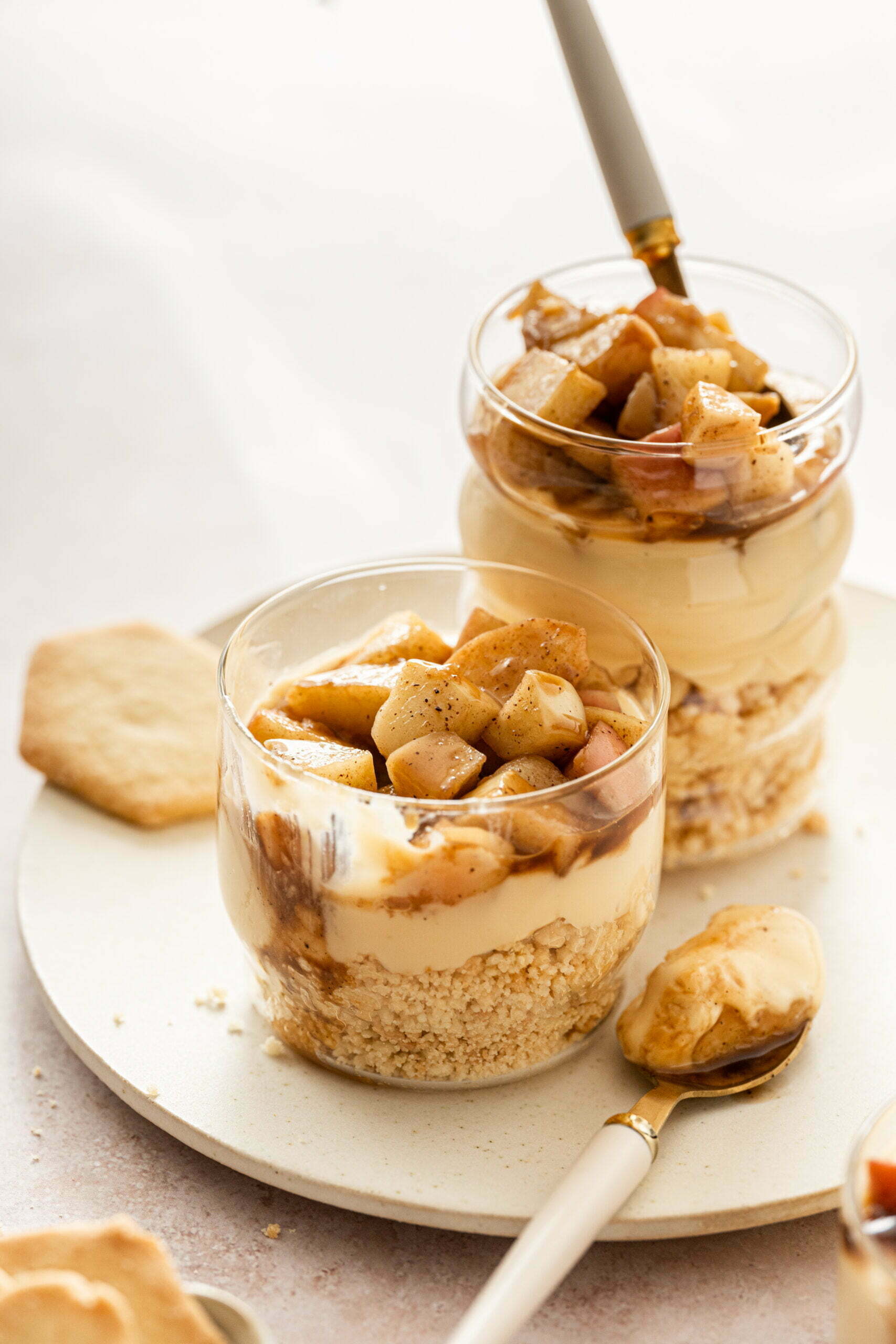 Pred vami je božanski recept za preprosto pito, kar v kozarčku. Sestavljena je iz hrustljavega piškotnega dna, plasti pudinga in plast mehkih jabolk s cimetom in slastno kokosovo karamelo iz treh sestavin!