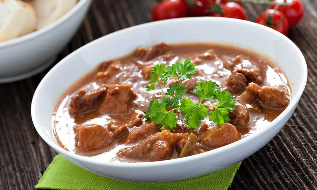 5 Golaž postrežemo v globokih krožnikih z izbrano prilogo (polenta, krompir, testenine …) ali z domačim kruhom.