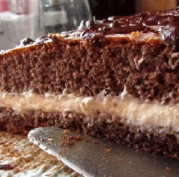 Iz sestavin za biskvit zamešamo maso in jo pečemo v pekaču, velikosti 20 x 30 cm in obloženem s peki papirjem 40 minut na 180 °C. Pečen in ohlajen biskvit prerežemo, da dobimo dve plasti.