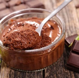Nato maso, ki smo jo dobili, prelijemo v servirne posodice in pustimo vsaj tri ure stati na hladnem mestu. Če želimo dobiti končno maso bele barve, uporabimo namesto grenke belo čokolado in tri liste zmehčane bele želatine, da bo masa kompaktna.