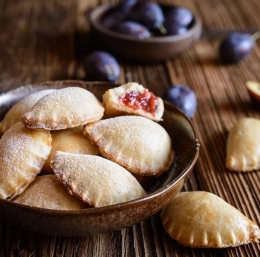 Na pomokani površini testo razvaljamo na približno 3 mm debeline in z modelčkom izrežemo kroge. Če nimamo modelčka pravšnje velikosti, si pomagamo s primernim kozarcem. Na eno polovico kroga damo žličko slivove marmelade, drugo polovico pa prepognemo čez in dobro pritisnemo z vilicami, da ne bo marmelada med peko uhajala iz žepkov.