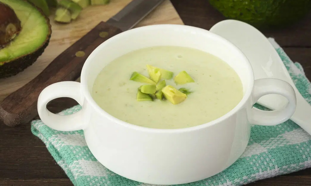 5 zrelih avokadov 250 ml grškega ali navadnega jogurta 800 ml hladne zelenjavne jušne osnove 1 limona – sok 1 šopek mlade čebule sol in poper po okusu