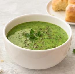 Vse sestavine zmiksamo in kuhamo na nizkem ognju približno 5 minut, da se juha zgosti. Odstavimo jo od ognja. Sedaj lahko dodamo še smetano. Okrasimo s svežim peteršiljem in postrežemo.