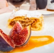 Pečenega malo ohladimo, potresemo s sladkorjem v prahu in postrežemo. Najboljši je še mlačen.