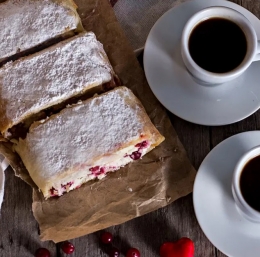 Brusnice operemo in očistimo. V skledici zmešamo skuto, limonino lupinico in jajce.