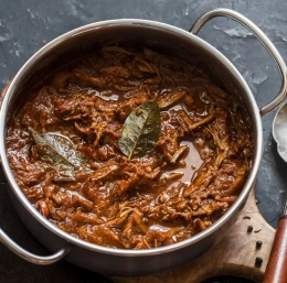 Ko je meso res mehko, ragu odkrijemo, večkrat premešamo in kuhamo še pol ure, da dobimo gosto in temno omako.