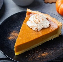 Postrežba: Bučno pito lahko postrežete s stepeno smetano ali kepico vanilijevega sladoleda po želji.