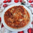 glava kislega zelja 250 g narezanega kislega zelja 20 g tofuja (dimljenega) 50 g sejtana por 200 ml paradižnikove mezge 100 g riža poper, sol po okusu