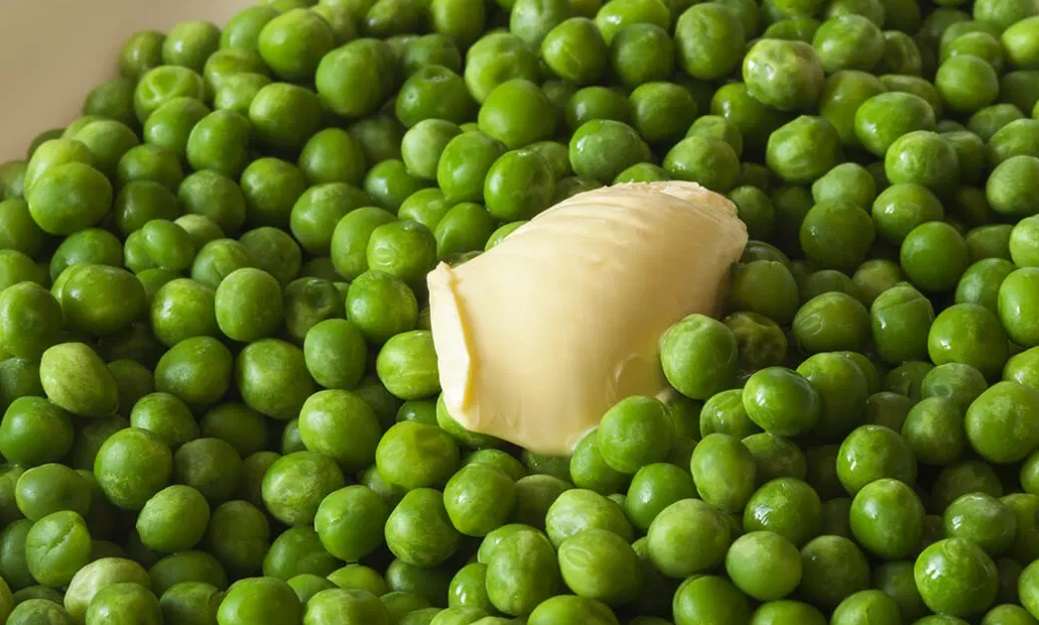 Dodamo oluščen grah, malo premešamo pokrito dušimo 15-20 minut, da se grah zmehča. Vmes večkrat premešamo in po žlicah dodajamo jušno osnovo.