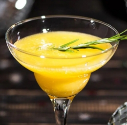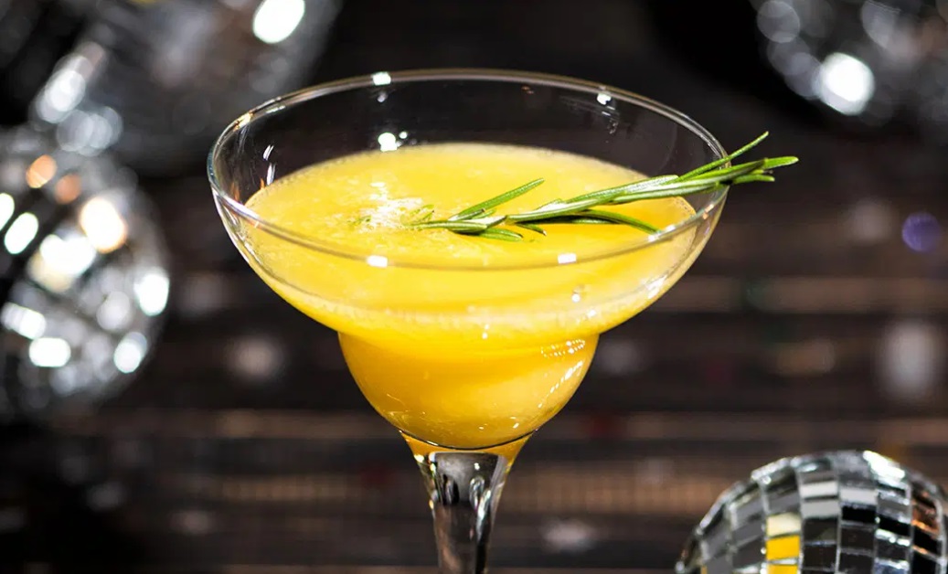 4 do 5 kock ledu 7,4 cl pomarančnega soka (lahko sveže stisnjenega ali iz tetrapaka) 7,6 cl dobro ohlajene penine za dolivanje vejica rožmarina za okras