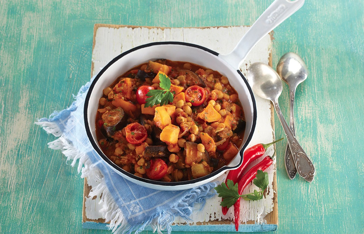 Enolončnica iz čičerike in sladkega krompirja je odlična za brezmesno kosilo.