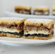 Pol testa vtisnite na dno modela premera 20cm. Prelijte s kremo in preostanek testa naribajte povrhu.
