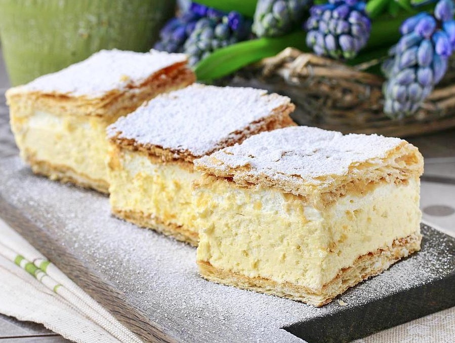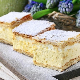 KREMŠNITE / KREMNE REZINE. Listnato testo odmrznemo v hladilniku ali pri sobni temperaturi.
