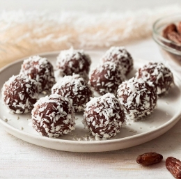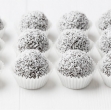 Oblikovanje kroglic: Iz zmesi zajemamo manjše količine in jih med dlanmi povaljamo v kroglice. Kroglice povaljamo v kokosovi moki. Postrežba in shranjevanje: Kroglice lahko takoj postrežemo ali pa jih shranimo v nepredušno zaprti posodi v hladilniku, kjer bodo ostale sveže do enega tedna.