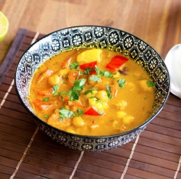 Tajski kokosov curry je popolna mešanica začimb, kokosovega mleka, čičerike, cvetače in ostale zelenjave. Pravi praznik za tvoje brbončice.