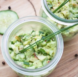 Če iščete hitro, svežo in hranljivo jed, je ta osvežilna solata s kumaro in avokadom odlična izbira. Polna vitaminov in zdrave maščobe vas bo nasitila, ne da bi vas obremenila. Priprava je preprosta, rezultat pa barvit in okusen obrok, ki ga lahko postrežete kot prilogo ali samostojno jed. Poleg tega je ta solata idealna za postrežbo v kozarcih, kar ji daje privlačen videz in priročnost pri serviranju.