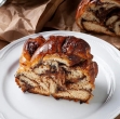 150 g rjavih ali zlatih rozin 80 ml ruma 7 g suhega kvasa 50 ml mlačnega mleka 190 g masla, stopljeno in ohlajeno 180 g sladkorja žlica limonine lupinice (5 g) žlica pomarančne lupinice (5 g) 250 ml vročega mleka 3 jajca L + rumenjak, razžvrkljano 2 žlički vanilijevega ekstrakta ali paste žlička soli 500 g moke