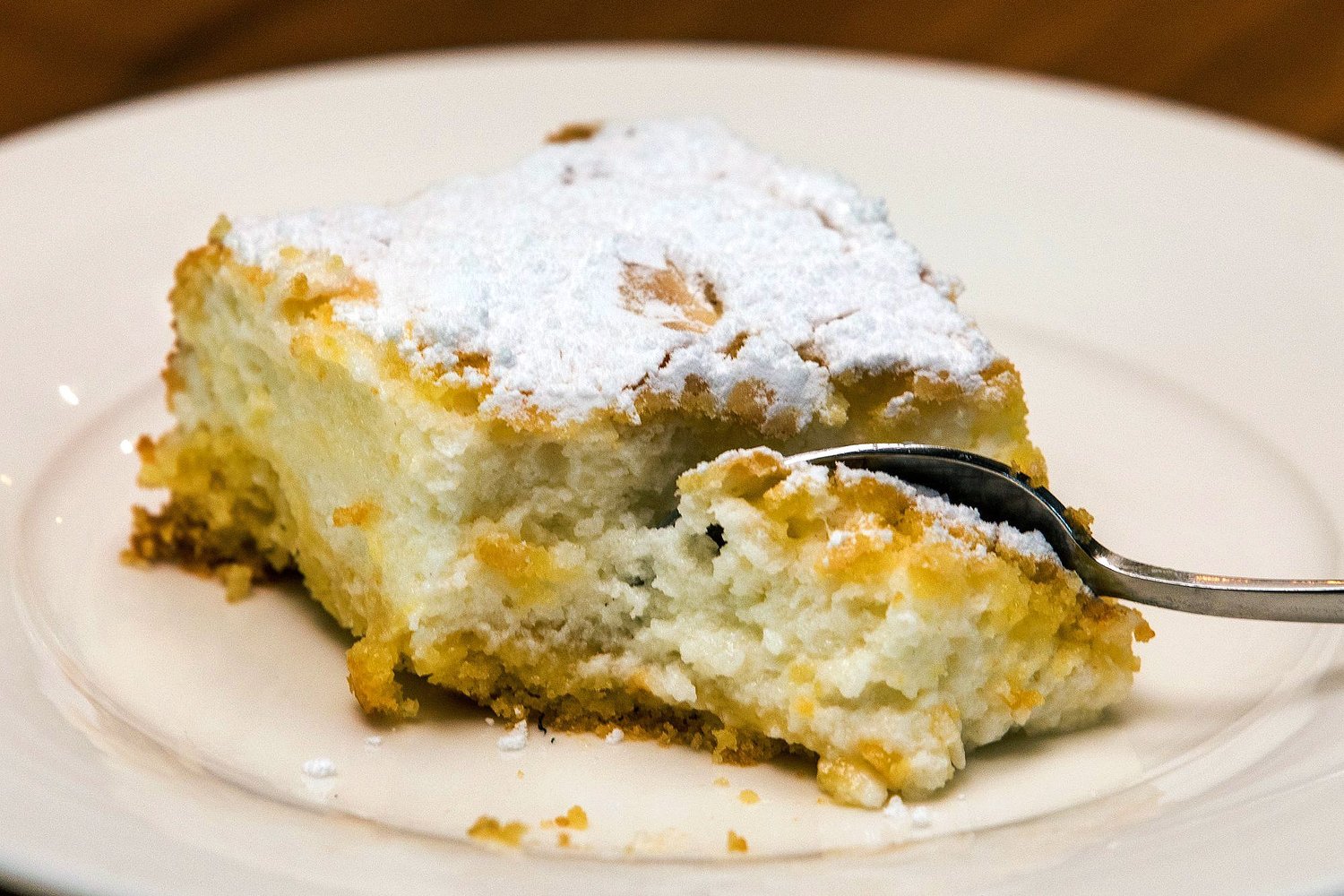 Ohlajeno pecivo potrosimo s sladkorjem v prahu, narežemo na kose in postrežemo.