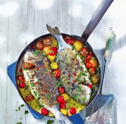 KUHINJA.COM | Orada v ponvi s češnjevimi paradižniki ...