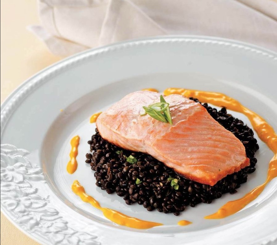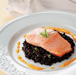 KUHINJA.COM | Losos in črna leča s smetanovo omako ...