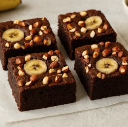Browniji z bananami in praženimi lešniki so sladica, ki se znajde v različnih vlogah. Primerni so kot sladek prigrizek ob kavi, kot posladek po kosilu ali celo kot darilo – lepo zaviti v papir in okrašeni z vrvico bodo razveselili vsakogar. Ker so dovolj bogati, zadošča že manjši kos, a ravno v tem je njihova moč: združujejo preprostost domače peke in eleganco sladic, ki bi jih brez težav postregli tudi v najboljših kavarnah.