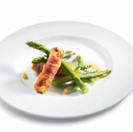 Fuje postrežemo s kuhanimi šparglji in doma narejeno majonezno omako, ki jo obogatimo s sladko smetano in gorčičnimi semeni.