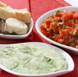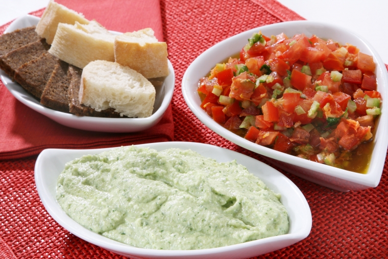 Sredico belega kruha nadrobimo in poškropimo s kisom. V terilniku zmečkamo olupljene stroke česna, peteržilj, navlaženo kruhovo sredico in mandlje. Med mežanjem počasi prilivamo olje in zmešamo v gladko omako.