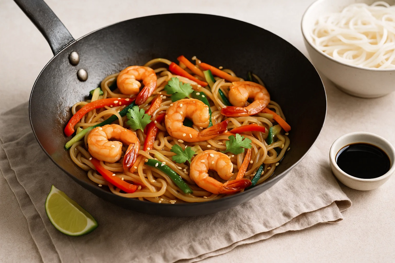 Če obstaja jed, ki v nekaj minutah pričara razkošje okusov in hkrati ne obremeni prebave, je to zagotovo vok s kozicami. Ta azijska klasika je priljubljena po vsem svetu, saj združuje svežino zelenjave, nežnost kozic in igrivost začimb v eni sami ponvi. Vse, kar potrebujete, je vroč vok, kanček ustvarjalnosti in nekaj osnovnih sestavin.