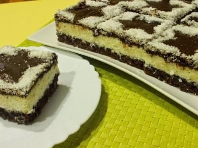 Pekač obložimo s papirjem za peko in vanj vlijemo polovico testa. V ogreti pečici ga pečemo 6 minut. Pekač s testom nato vzamemo iz pečice in po testu razporedimo kokosovo kremo, na katero nanesemo preostanek testa. Pecivo pečemo v ogreti pečici še 7 minut.