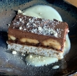 Izvrstna sladica za vse, ki se navdušujete nad kombinacijo banan in čokolade. Pod čokoladnim prelivom se skriva slastna skutina krema z bananami. Osnova pa je rahlo biskvitno testo s kakavom, ki ga lahko pripravite tudi z ajdovo moko.