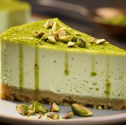 Ta cheesecake brez peke ni le čudovit na pogled, temveč je tudi okusen kontrast običajnim sirnim tortam. S hrustljavo podlago, svilnato sredico in prepoznavno zeleno kremo od pistacij je ta torta popolna izbira kadar koli želite navdušiti svoje goste z nekaj drugačnim.