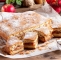 Pečeno pecivo ohladimo na sobno temperaturo. Ohlajeno potrosimo s sladkorjem v prahu, narežemo na kose in postrežemo.