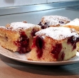 250–300 g višenj (lahko sveže ali iz kompota) sladkor v prahu za posip