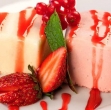 Jagode dobro umijemo. Približno polovico jih očistimo in narežemo na lističe, pokapljamo z limoninim sokom in potresemo z 2 žlicama sladkorja v prahu.