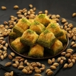 Po testu razmažemo tanke lističe masla, namažemo pistacijin namaz, potresemo sesekljano pistacijo in malinovo marmelado.