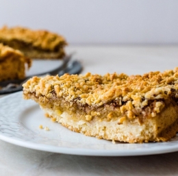 5. Ko se vrh zapeče zlato rjavo, jabolka pa se zmehčajo, je pecivo narejeno. Počakajte, da se nekoliko ohladi, nato pa ga narežite na rezine in postrezite.
