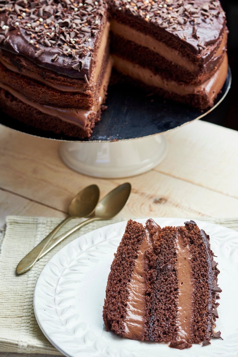 | Ko gre za sladice za posebne priložnosti, je ena sladica absolutni kralj mize: čudovita čokoladna torta . S tremi vlažnimi, mehkimi plastmi biskvita in bogato, razkošno čokoladno glazuro bi to zlahka postala vaša najljubša čokoladna sladica.